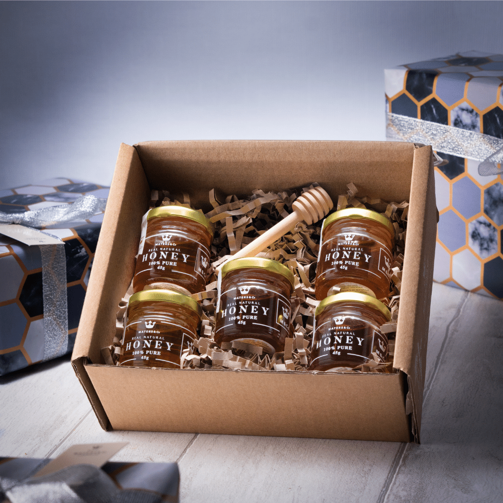 This Taster Box is packed by hand into a presentable branded box with the cutest mini honey dipper, a great way to sample this range. It also makes for a beautiful gift for any honey connoisseur with our luxury gift wrapping!