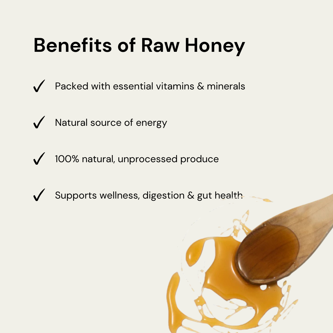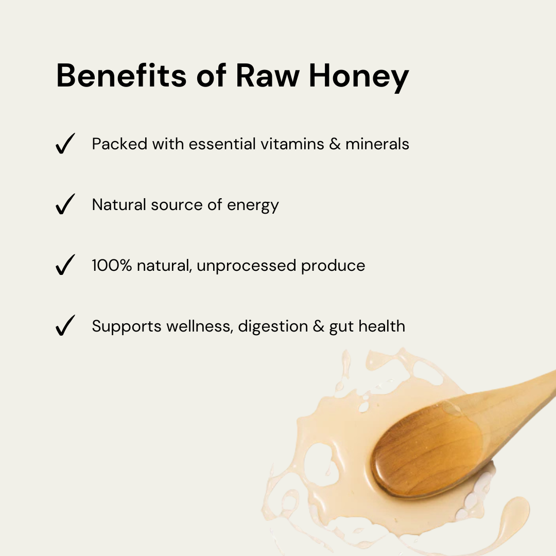Most of the honey consumed today is processed honey that’s been heated and filtered since it was gathered from the hive. Unlike processed honey, raw honey does not get robbed of its incredible nutritional value and health benefits. It can help with everything from low energy to sleep problems to seasonal allergies. Our raw honey is a pure, unfiltered and unpasteurised honey from one source. Unfortunately most of the supermarket brands sell honey which is ‘a blend of honey’ which means there is no traceability of the honey, hives or which countries it came from. And as it has been heated to a high temperature most of the abundant nutritional vitamins, enzymes and natural health benefits are lost.